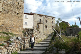 Note : On ne passe pas par hasard à Guitera les Bains, on y va volontairement car la route s’arrête en haut du village. Ce petit village de moyenne montagne (620m d’altitude) est attachant. Les possibilités de balade pédestre y sont nombreuses et la source d’eau chaude sulfureuse qui jaillit en contrebas permet de se relaxer et de faire disparaître les courbatures de la journées.